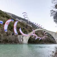 Ο Red Bull αθλητής και παγκόσμιος πρωταθλητής paramotor, Δημήτρης Κολλιάκος, κάνει ένα εντυπωσιακό barrel roll στο μεγαλύτερο μονότοξο γεφύρι των.